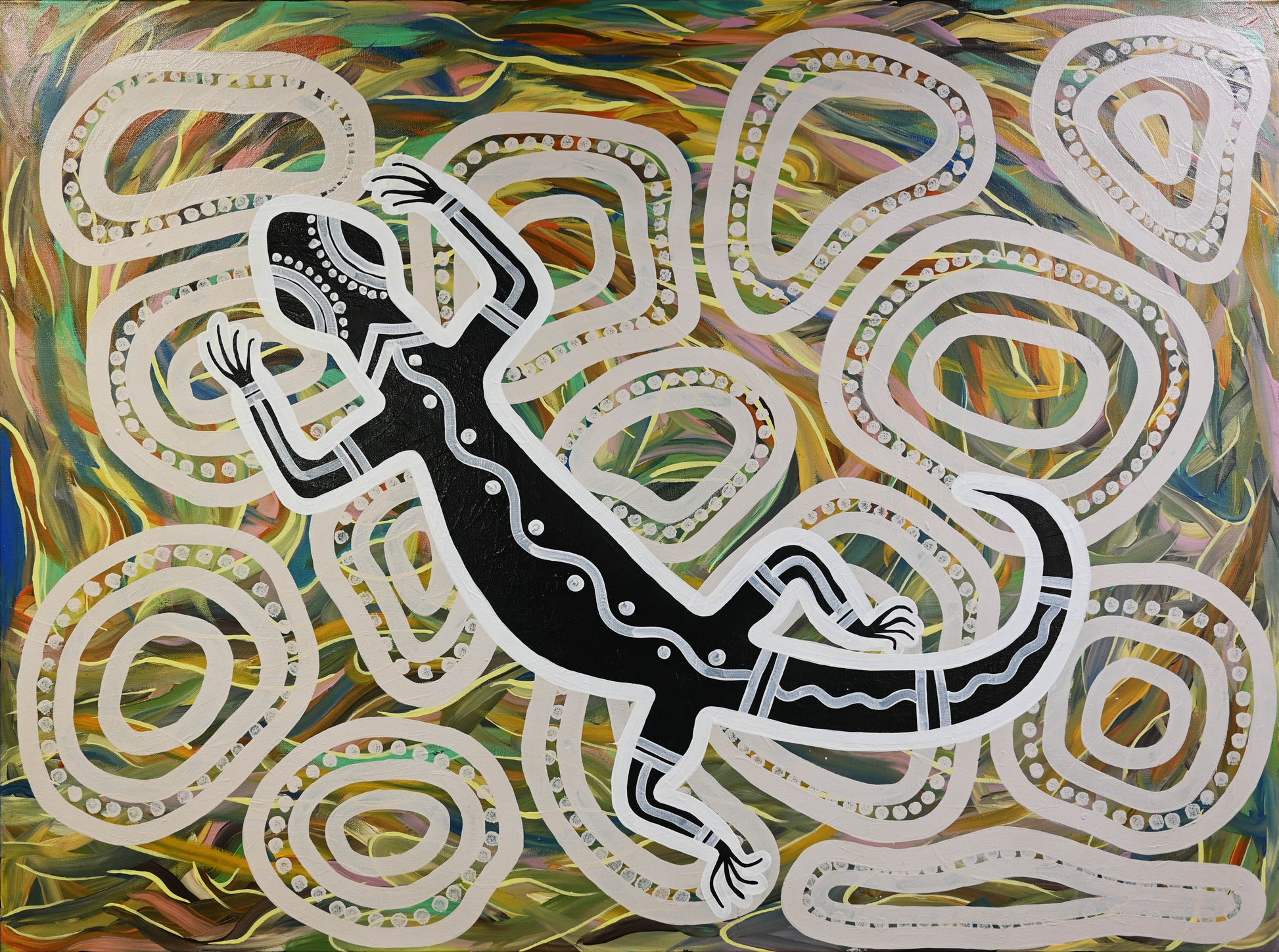 This piece is about the different ecosystems you can find in Bundjalung Country. In Bundjalung, you can find rainforests, deserts, bush lands, swamplands and coast lands in such a small area. The Goanna, Dirawong, is the creator of these lands. Dirawong is the protector of Bundjalung and guides us through the right paths.
