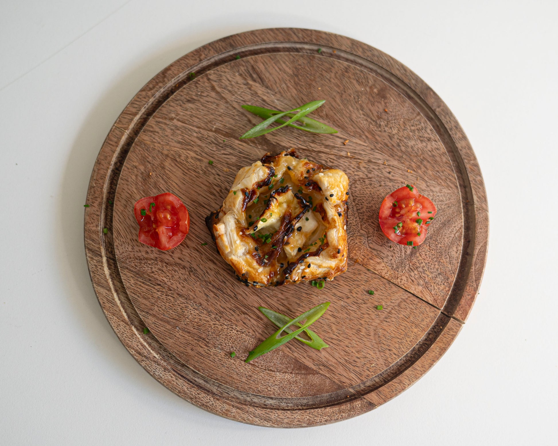 Fresh pastry with slicedcamembert, honey & Native seasoning.Vegetarian