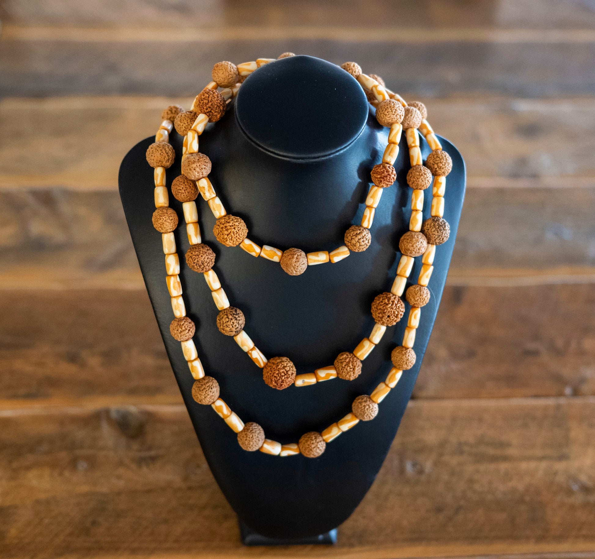 Long bone beads and quandong necklace