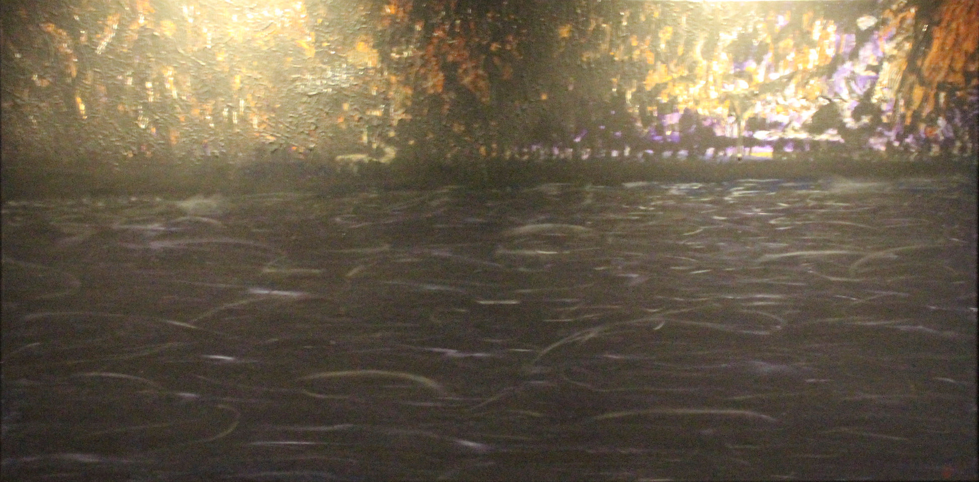 My focus with this piece was to portray the cliffs, from the waters of the river, at night, using star and ceremony light only, the water fat and pregnant with life.