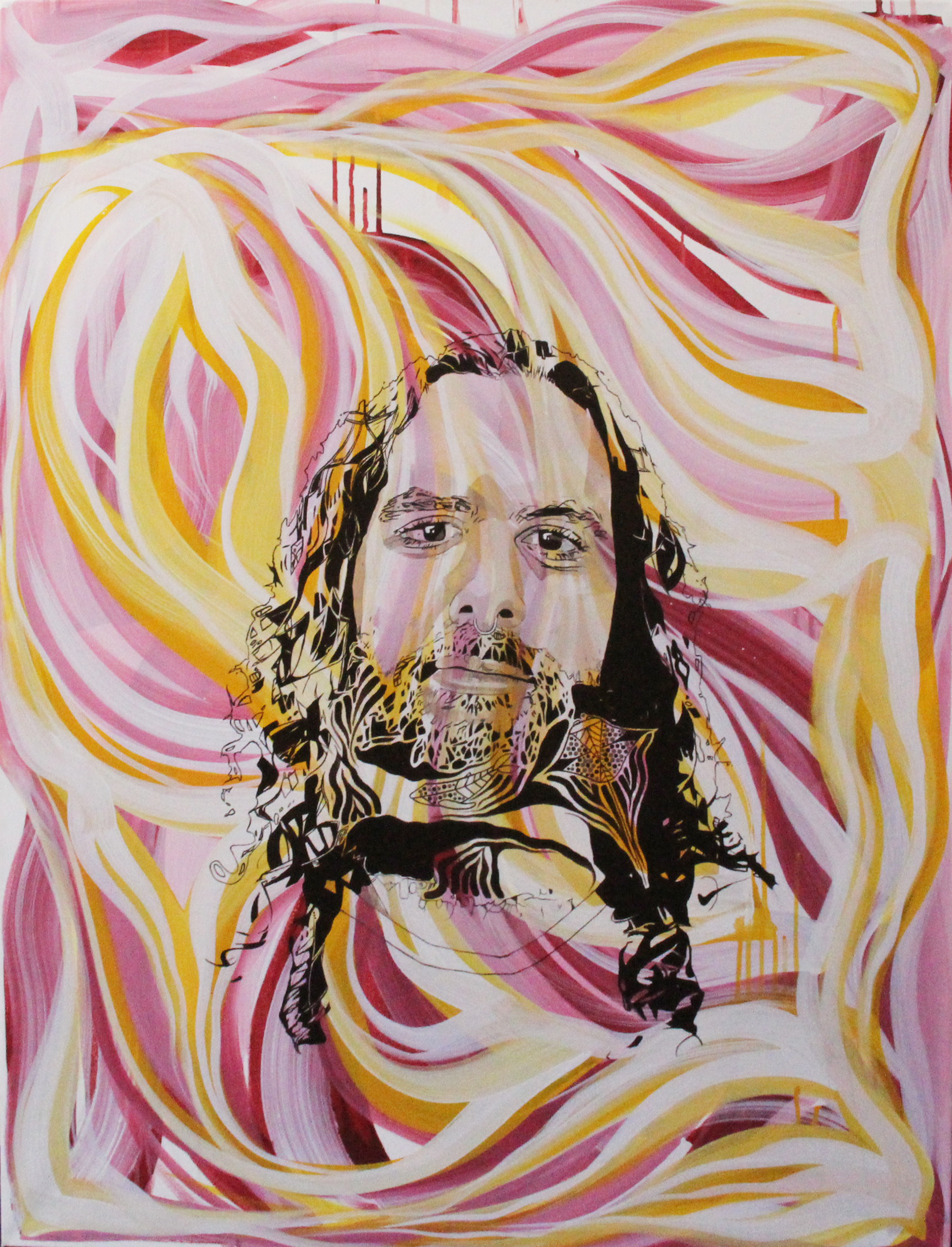 Painted as the subject is Jhindu Pedro, a Mirning, Wuthathi man practicing as a musician and some one who I identify carries themselves in relation to Yindyamarra.
