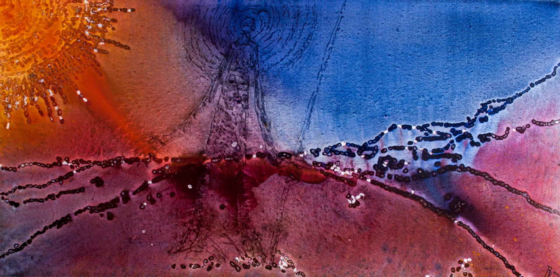 This piece is in response to European artists in the early days of colonisation, being commissioned to visually record the landscapes and everything within, except for us.