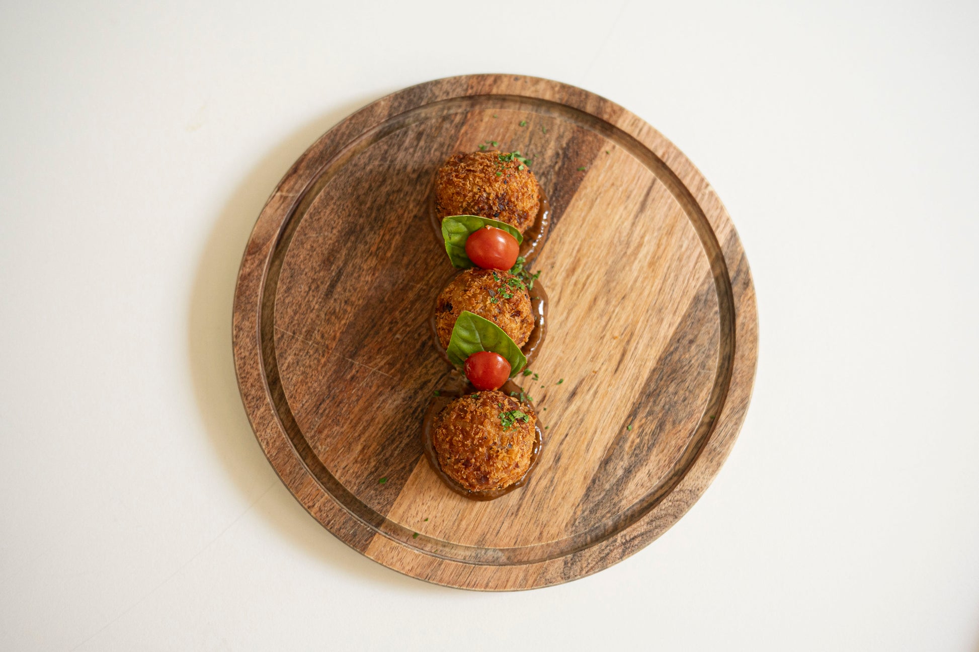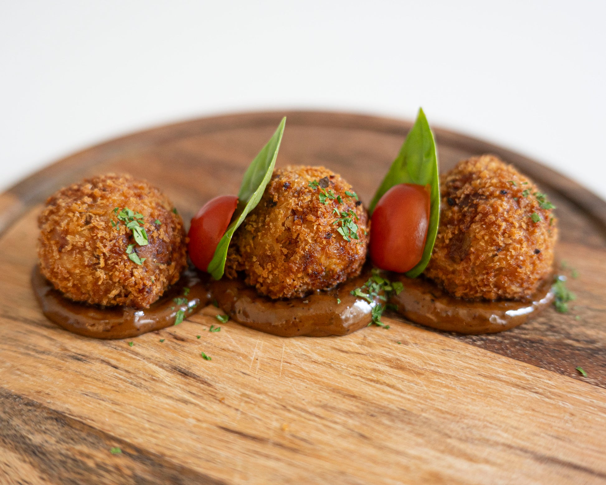 House made cheesy mushroom risottoin panko crumbs, served with charcoalgarlic aioli.Vegetarian