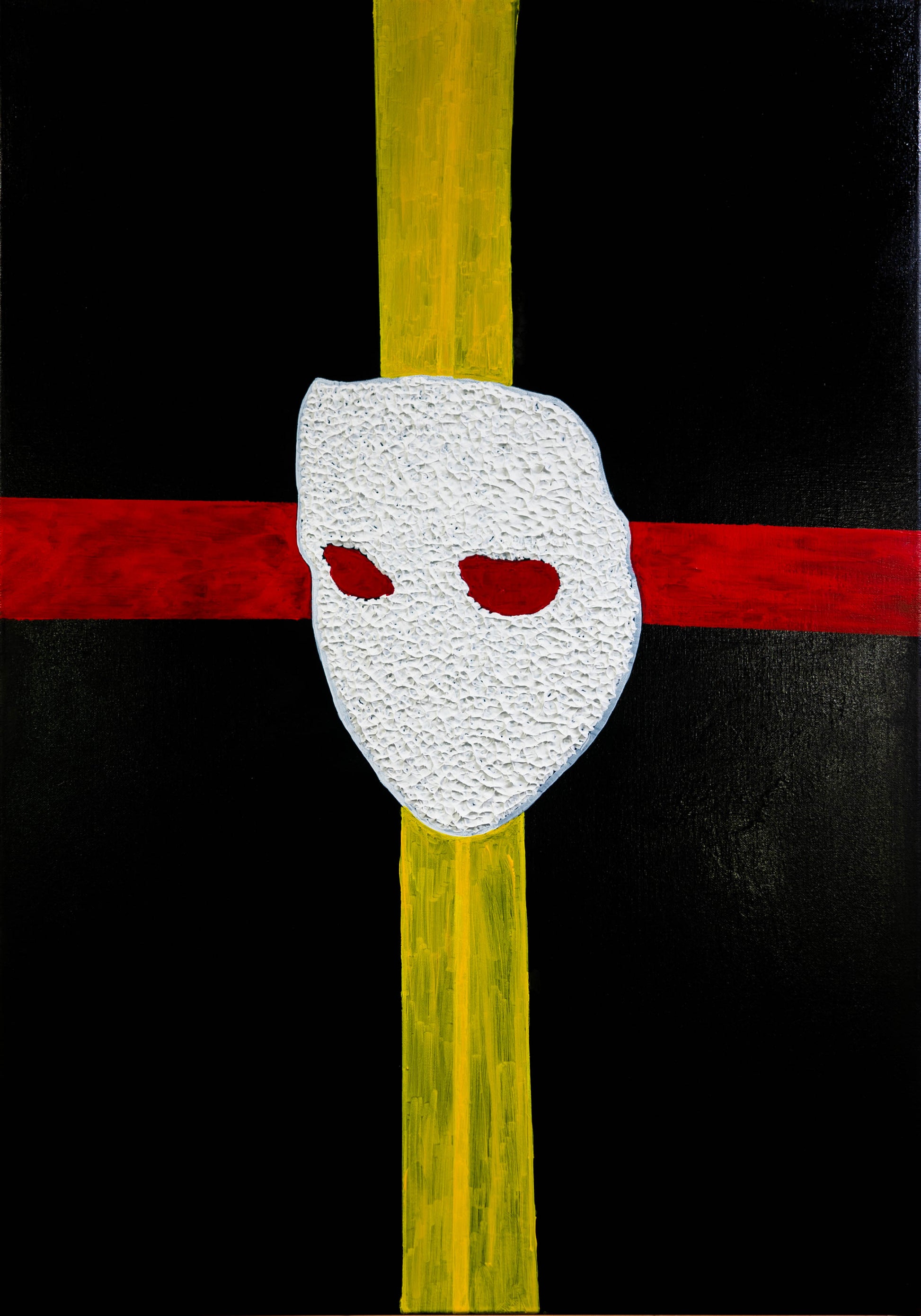 Surface is a piece created by Grace Naveikata that focuses on the strength that comes from adversity. When initially viewing the piece, it looks like a simple portrait with intersecting yellow and red lines across the canvas. However, upon closer inspection, the “skin” on the face of the portrait is raised, spiked even. This is symbolic of the protective and “thicker skin” that comes from being a person of colour in Australia. The red and yellow lines are symbolic of outside influences such as racism and discrimination, being the painful reasons as to why most people of colour often have to create a metaphorical shield in the form of internal strength and resilience when experiencing adversity. This piece aims to portray that subject matter externally.