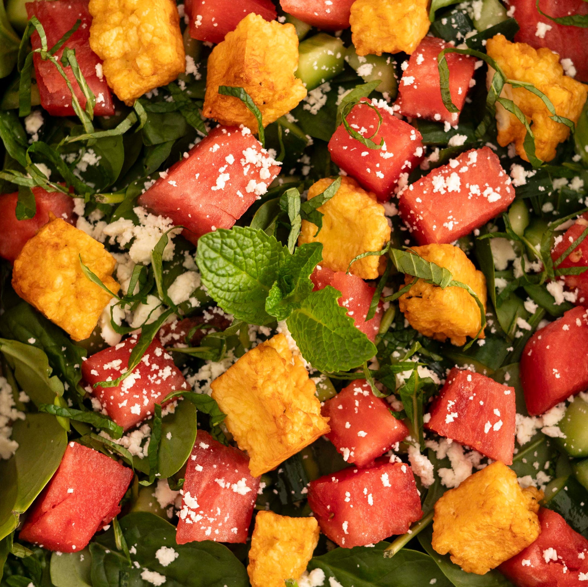 watermelon, spinach, mint, cucumber and crumbled feta.